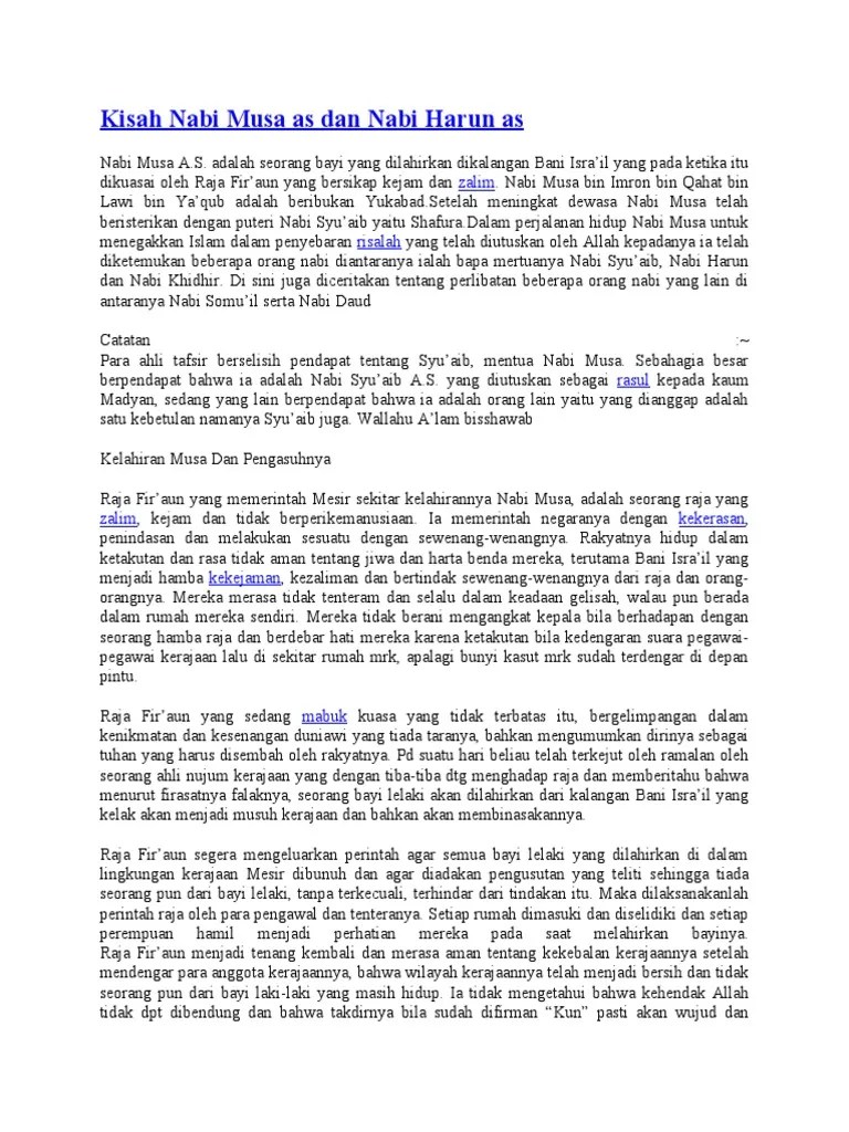 Yakni musa bin imran bin yashur bin mahits bin lawiy bin yaqub bin ishaq bin ibrahim. Stories related to moses are among the most frequently cited stories found in the qur'an. Secara nasab, nabi musa bersambung ke nabi ibrahim. This is, in part, due to the similarity of social context of da'wa . Kisah pertembungan di antara mukjizat nabi musa dengan sihir dari tukang sihir firaun dikata bermula disebab satu peristiwa di mana pada satu ketika semasa .